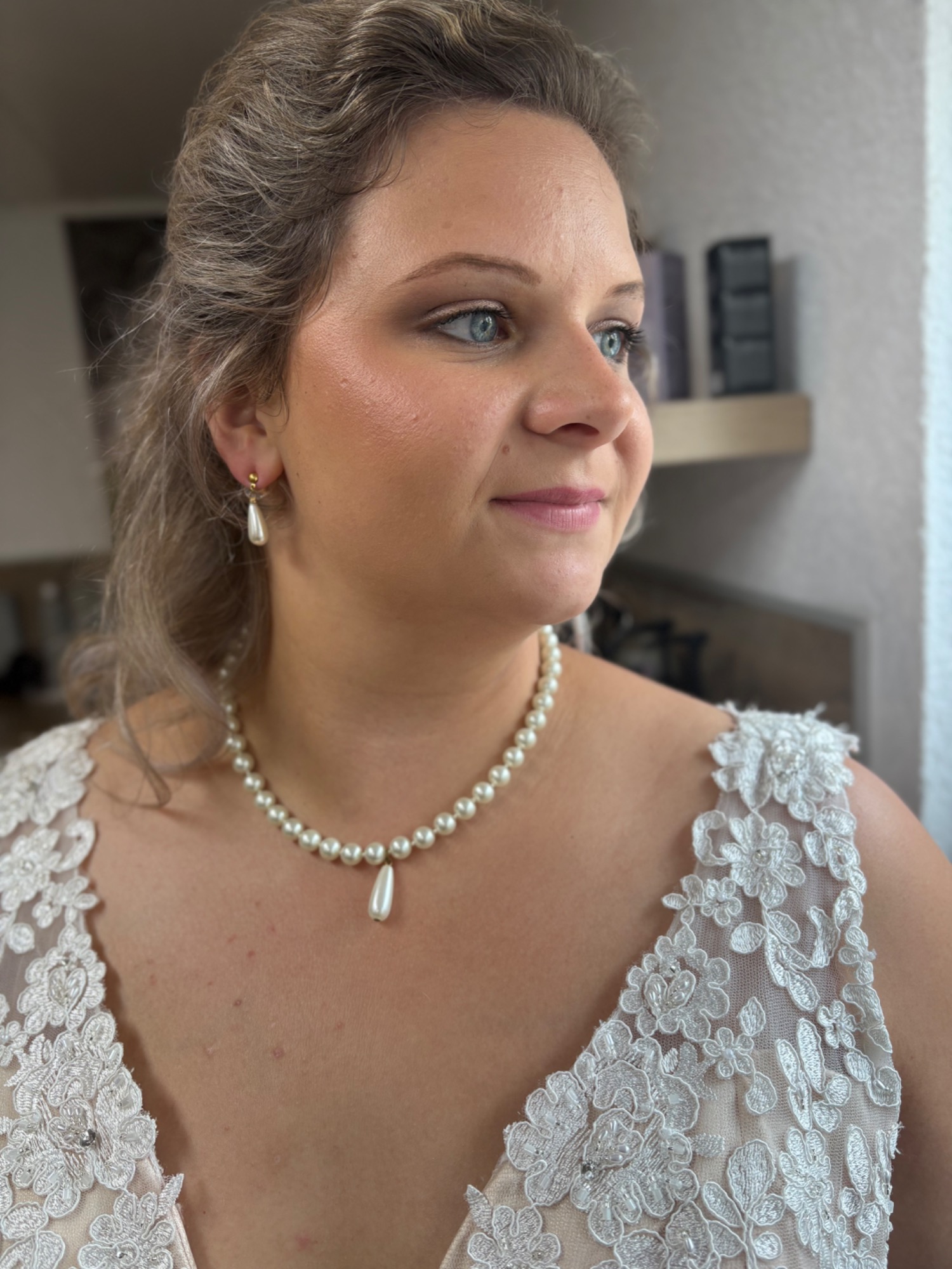 Ich bin im Salon herzlich empfangen worden und sehr gut beraten worden. Auch das Probestecken war Super 🙂 vielen lieben Dank das du uns so toll an der Seite standest und auch geholfen hast, nicht nur mit make Up und Haare sondern auch beim Kleid anziehen 🙂